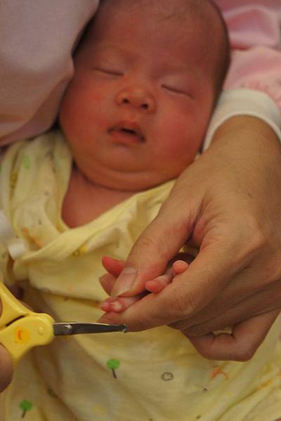 之前月子中心並沒有幫baby剪指甲,只單純套著小手套, 據說是怕剪傷小朋友就以手套達到防抓傷效果