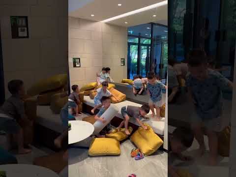 成功雙胞胎的媽咪和外婆都非常的熱情,聽說寶寶在公園玩耍時,認識了一些朋友,就很熱情的邀約大家一起去社區游泳,游泳結束後就去會議室吃飯,孩子吃飽就開始整個會議室玩鬼抓人或是打枕頭仗,等大人用餐結束再轉移陣地到遊戲室玩耍。